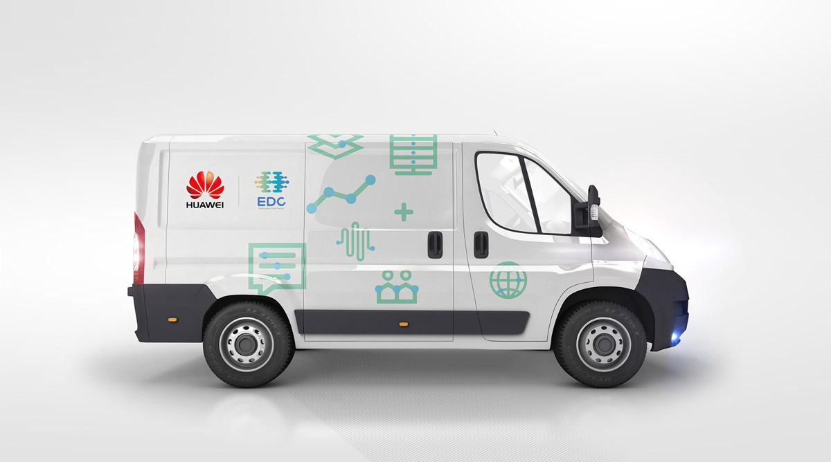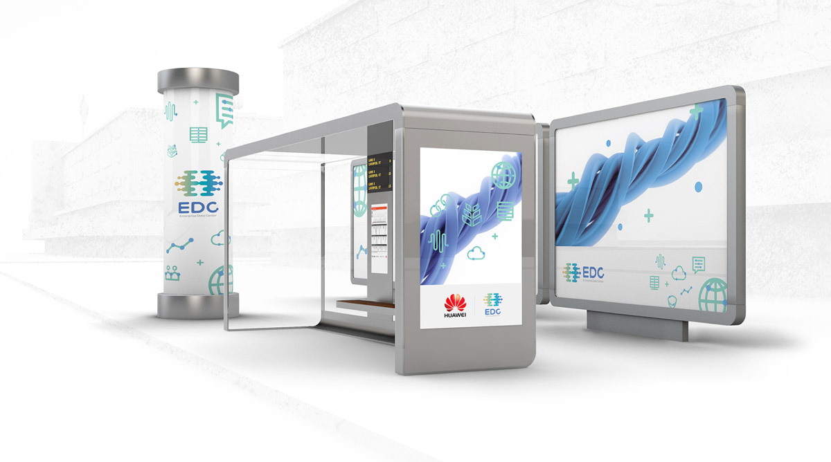 华为全球数据中心(EDC)以华为“H”为核心元素,创作了大脑形态的新形象,点线连接的细节处理,表达了数据的行业特征;