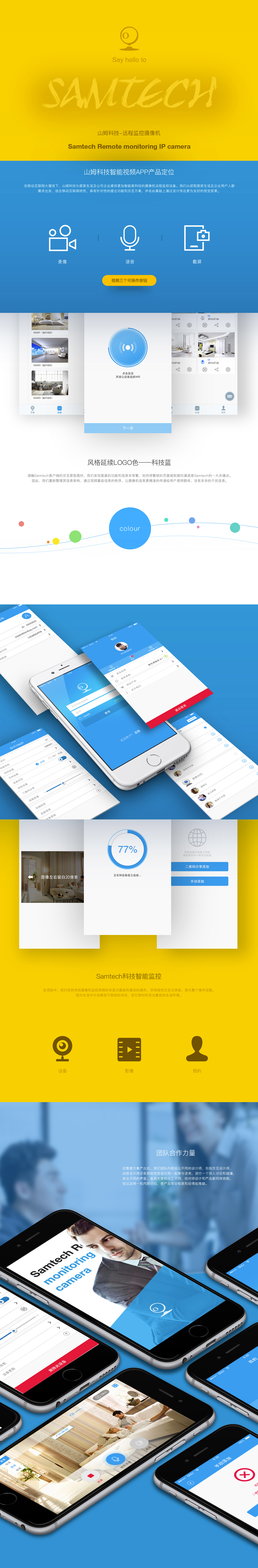 在移动互联网大潮流下,山姆科技为居家生活及公司企业提供更加智能高科技的摄像机远程监控设备。我们从居家生活及企业用户人群需求出发,结合移动互联网特性,具有针对性的提出功能和交互方案,并在此基础上通过设计传达更为好的视觉效果。