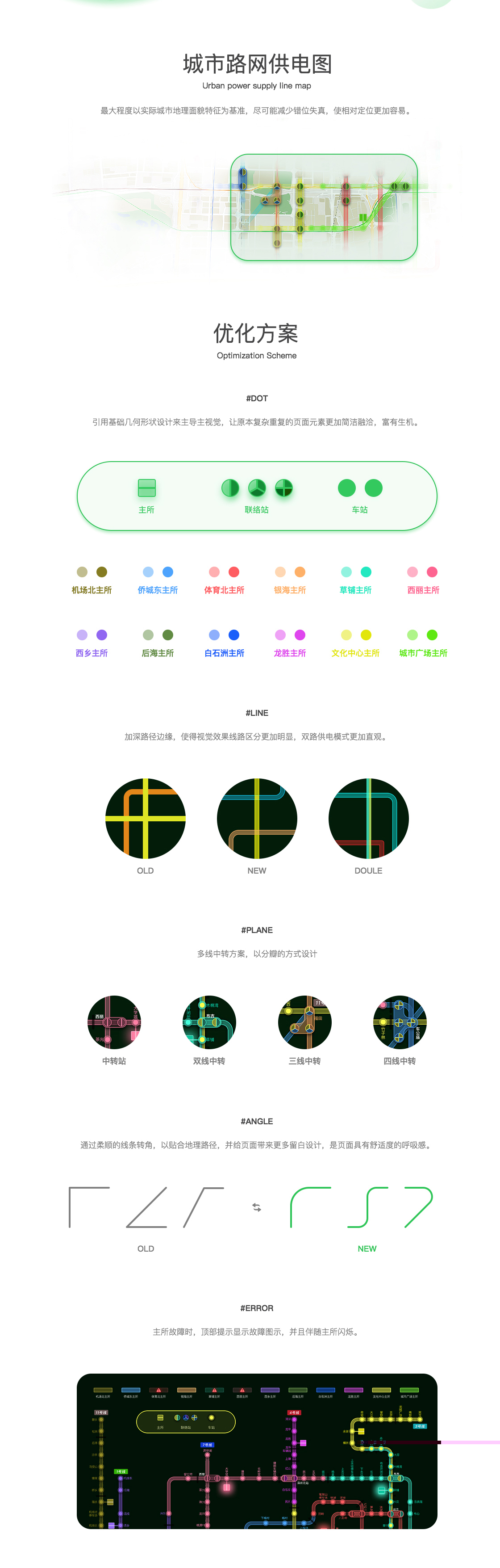 最大程度以实际城市地理面貌特征为基准,尽可能减少错位失真,使相对定位更加容易,引用 基础几何形状设计主导视觉,让原本复杂重复的页面元素更加简洁融洽,富有生机。