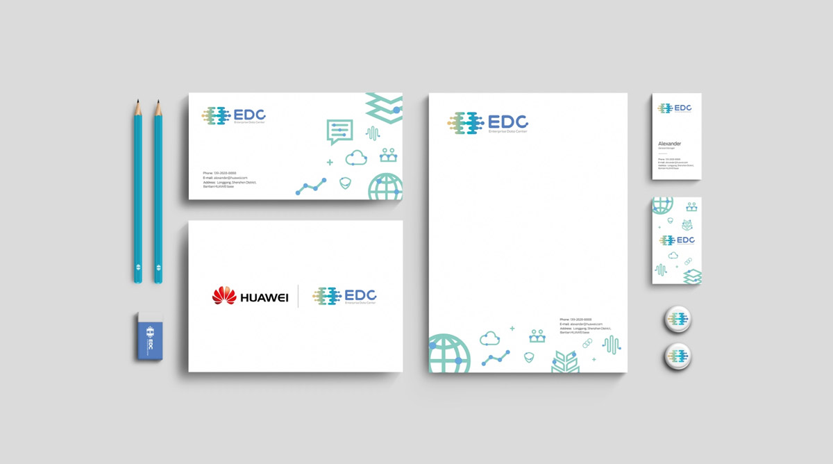 以点线连接,表达“连接、安全、服务器、云端、全球”等品牌特征,强化品牌视觉识别。为华为UCD中心、终端公司、流程IT部