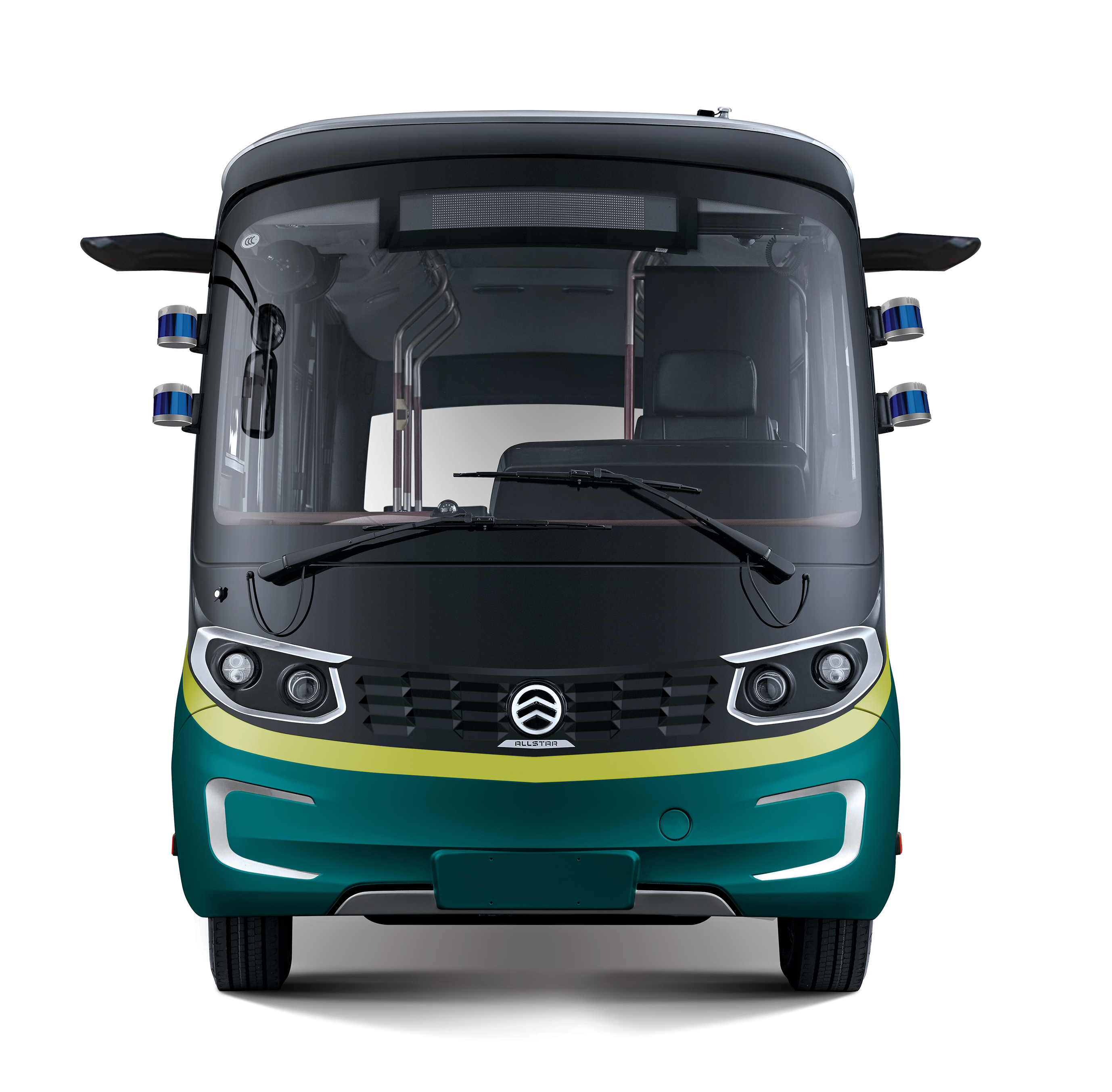 轻舟只有6米长,有9个乘客位,墨绿与黑色的外观十分时尚。与普通公交车更为不同的是,驾驶座上